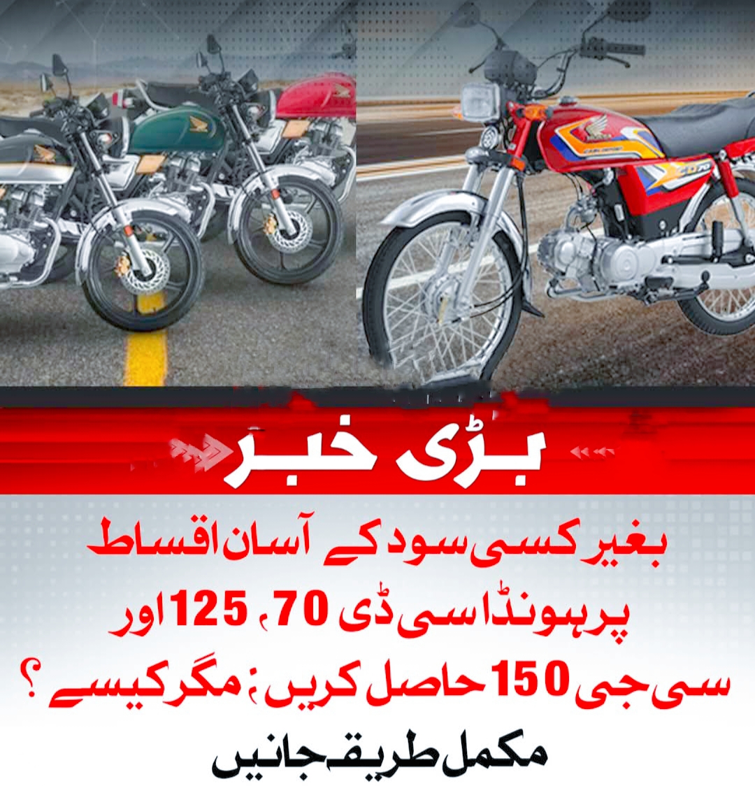 بغیر کسی سود کے آسان اقساط پر ہونڈا سی ڈی 70، 125 اور سی جی 150 حاصل کریں… See More بینک الفلاح نے موٹر سائیکل خریدنے کے خواہش مند صارفین کے لیے ایک خصوصی اور محدود مدت کی زیرو مارک اپ اقساطی اسکیم متعارف کرا دی ہے، جس کے تحت اٹلس ہنڈا کی منتخب موٹر … Read more