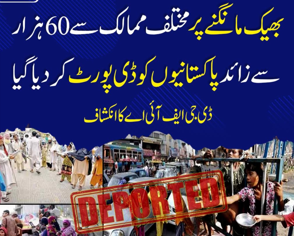 بھیک مانگنے پر مختلف ممالک سے 60 ہزار سے زائد پاکستانیوں کو ڈی پورٹ کردیا گیا ڈی جی ایف آئی اے کا انکشاف بھیک مانگنے پر مختلف ممالک سے 60 ہزار سے زائد پاکستانیوں کو ڈی پورٹ کردیا گیا ڈی جی ایف آئی اے کا انکشاف